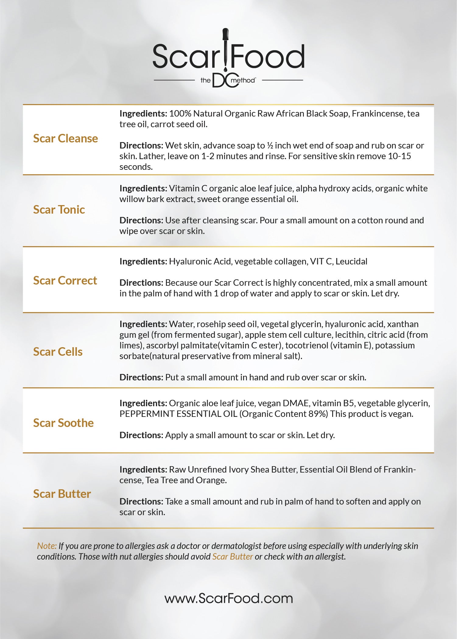 Step 6. Scar Butter (1 oz): 100% Unrefined Shea Butter, Vitamins A, E, F, and key essential oils for rapid scar repair.